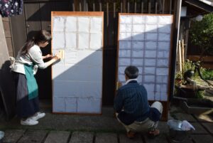 糊と刷毛を使う、昔ながらの障子張りを学びます。