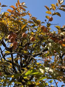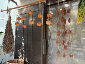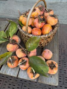 庭の柿の木が今年もたくさん実をつけてくれました。朝は、まるで絨毯のように敷き詰められていた落ち葉を掃きながら、カラフルできれいな葉っぱをディスプレイに。昼前にボランティアさんが干し柿をお届けしてくれたので、軒先につるし。午後は柿の収穫。かごいっぱいになりましたが、まだまだあります!枝先にあったり、軒先に干されていたり、いろいろな柿を楽しみに、ぜひ博物館におでかけください。気持ちのいい風が吹いています。(り)